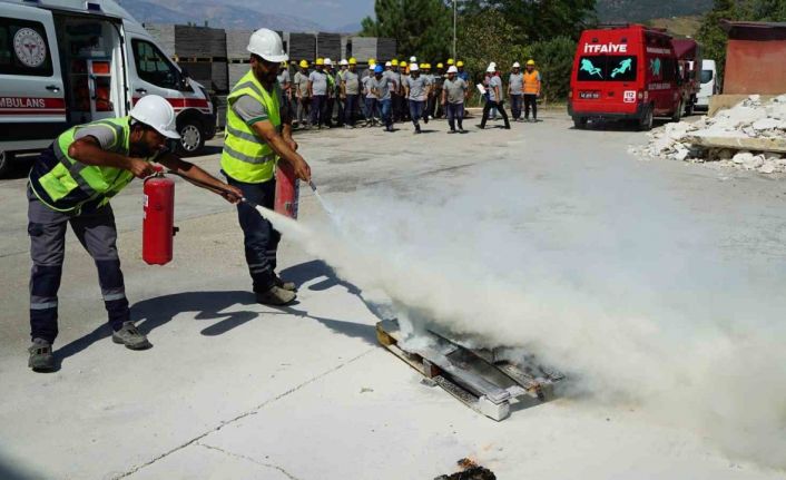 Kahramanmaraş’ta taş ocağı personellerine yangına müdahale yöntemleri ve yangın esnasında tahliye teknikleri hakkında eğitim verildi.