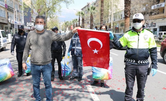 Kahramanmaraş’ta mobilya sektöründe hizmet veren Adem Mağralı, 6 - 12 Nisan tarihleri arasında kutlanan Polis Haftası nedeniyle kentte görev yapan polislere sürpriz yaptı. Mağralı, Trabzon Bulvarı’nda korona virüs tedbirleri kapsamında trafikte denetim yapan polislere Türk bayrağı, bir buket çiçek ve yastık hediye etti. Mağralı, "Bizler için gecesini gündüzüne katan polis teşkilatımızın 175’inci yıl dönümü kutlu olsun. Rahat uyumaları için onlara yastık hediye ettik. Sadece güvenlik için değil, şimdi de sağlığımız için sokaklarda olan polislerimizi unutmak istemedik" dedi.