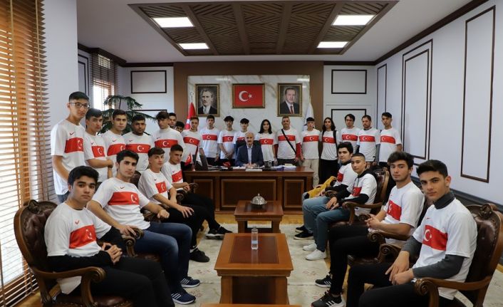 Dulkadiroğlu Kamu Külliyesi önünden gençleri milli maça uğurlayan Dulkadiroğlu Belediye Başkanı Necati Okay, gençlere birer adet de milli formayı hediye etti.