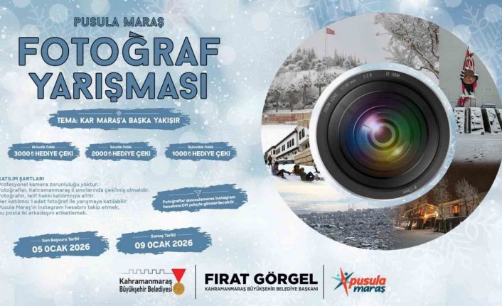 Kahramanmaraş Büyükşehir Belediyesinin gençlik markası "Pusula Maraş", "Kar Maraş’a Başka Yakışır" temalı fotoğraf yarışması düzenliyor.