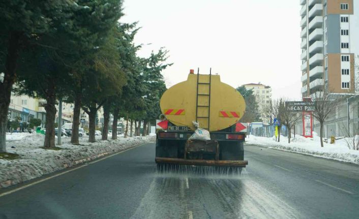 Hava sıcaklığının sıfırın altında hissedildiği Kahramanmaraş’ta; beklenen yoğun kar yağışı öncesi ana cadde, bulvar ve kavşaklarda bir yandan tuzlama çalışmaları gerçekleştiren ekipler, kar yağışı sonrası oluşabilecek buzlanma riskine önlem olarak solüsyon uygulaması gerçekleştiriyor.