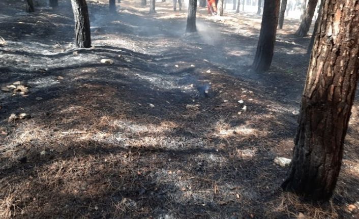 Sigara izmaritinden çıktığı tahmin edilen yangında 1 dönüm ormanlık alan zarar gördü.