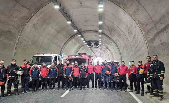 Kahramanmaraş’ın Göksun ilçesinde Cahit Zarifoğlu Tüneli’nde trafik kazası tatbikatı yapıldı.