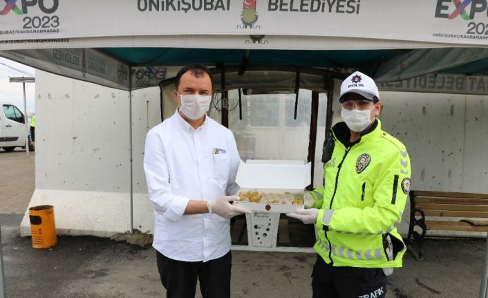 Kahramanmaraş’ta kent girişlerindeki uygulama noktalarında görev yapan polislere MADO tarafından tatlı ikram edildi.