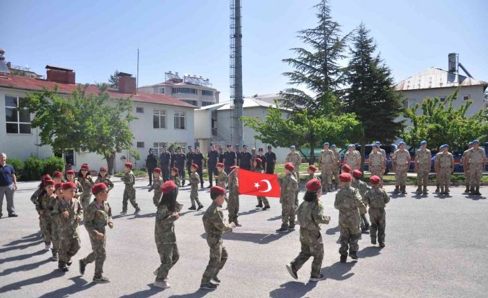 Kahramanmaraş’ın Afşin ilçesinde ilkokul öğrencileri İlçe Jandarma Komutanlığını ziyaret ederek hazırladıkları gösterileri sergiledi.
