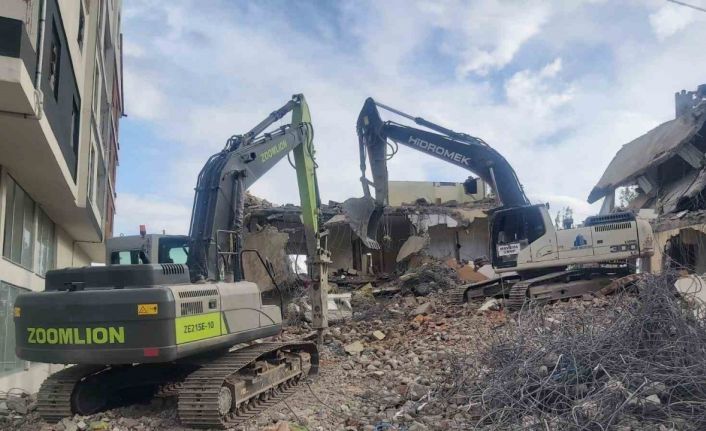 Kahramanmaraş’ın Nurhak ilçesinde 6 Şubat’ta yaşanan depremin ardından ağır hasarlı binaların yıkım işlemleri devam ediyor.