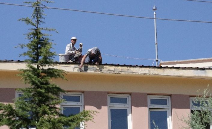 Onikişubat ilçesi Önsen Mahallesinde bir okulun çatısında çalışan 2 işçiden birisi kendisini halatla bağlayıp tadilat yaptı. İşçilerden biri diğerinden aldığı harcı mala yardımıyla okulun çatı kısmını onarmaya çalıştı. 5 katlı okulun çatısında çalışan işçiler olası kazaya adeta davetiye çıkardı. İşçiler tadilatı kazasız atlattıktan sonra çatıdan indi.