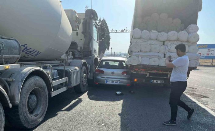 Kaza, Kahramanmaraş doğu çevre yolu üzerinde meydana geldi. Sürüsünün ismi öğrenilemeyen 46 AJN 548 plakalı Volkswagen marka otomobil seyir halindeyken, kumaş yüklü kamyon ve beton mikseri iş makinası arasında sıkıştı.