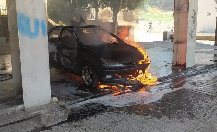 Kahramanmaraş’ta park halindeki otomobil yanarak kullanılamaz hale geldi.