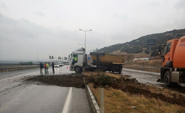Kazaya karışan kamyon bulunduğu yerden kaldırıldı.