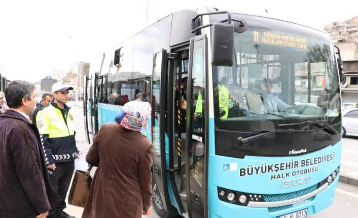 Kahramanmaraş’ta trafik polisleri korona virüs önlemleri kapsamında otobüs ve yolculara uyarılarda bulundu.