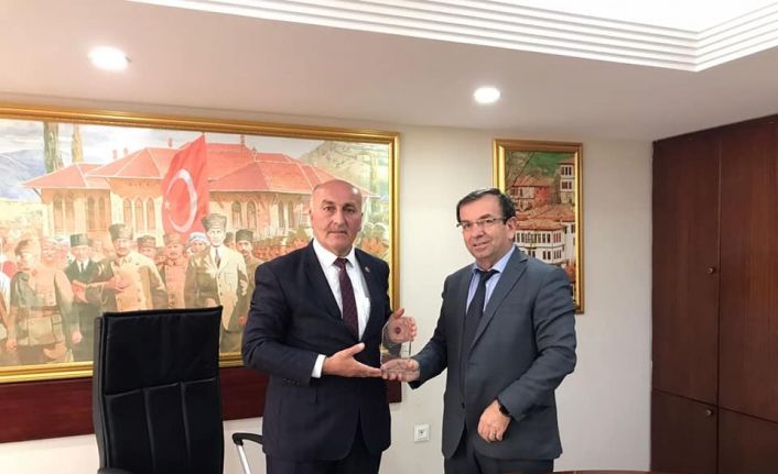 Safranbolu Emek Ortaokulu Müdürü Yüksel Yıldız beraberindeki heyet ile birlikte İl Genel Meclis Başkanı Ahmet Sözen’e hayırlı olsun ziyaretinde bulunarak plaket takdim etti.