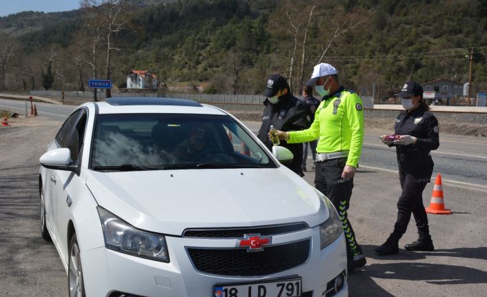 Polis ekipleri Yenice-Zonguldak yolu üzerinde bulunan noktada uygulama yaparak hem Polis Haftası’nı sürücülerle birlikte kutladılar hem de korona virüse karşı vatandaşları uyardılar. Uygulama noktasında araçları durdurarak araç içerisinde maske takımı, sosyal mesafenin korunması için sürücülere ve araçlarda yolculuk edenleri uyaran ekipler, emniyet kemeri takmaları, seyir halindeyken cep telefonu kullanmamaları ve trafik kurallarına uymaları konusunda da uyarıda bulundular. Ekipler, Türk Polis Teşkilatı’nın 176.yılı dolayısıyla da sürücülere ve araçta bulunanlara kolonya ve çikolata ikram etti.