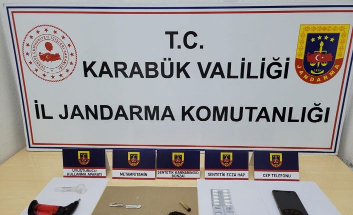 İl Jandarma Komutanlığı ekipleri Karabük’te uyuşturucu tacirlerine yönelik çalışmalarına sürdürüyor. 6-7 Mayıs tarihlerinde merkez ve Safranbolu ilçesinde düzenlenen 3 ayrı operasyonda 17,91 gram metamfetamin, 185,83 gram bonzai, 12 adet uyuşturucu hap, kuru sıkı tabanca ve şarjör, 5 adet uyuşturucu kullanma aparatı ile 3 adet telefon ele geçirildi.