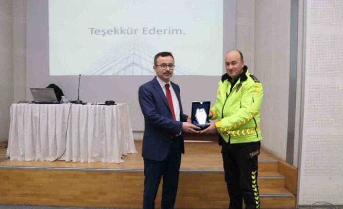 Programın sonunda, Karabük İl Emniyet Müdür Yardımcısı Aydemir Şahin, Dr. Öğr. Üyesi Ali Osman Yılmaz’a değerli katkılarından dolayı teşekkür ederek bir plaket takdim etti.