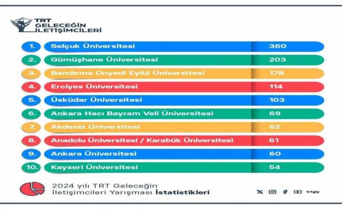 Karabük Üniversitesi, 2024 yılı TRT Geleceğin İletişimcileri Yarışması çerçevesinde en çok eser gönderen ilk 10 üniversite arasında yer alarak büyük bir başarıya imza attı.
