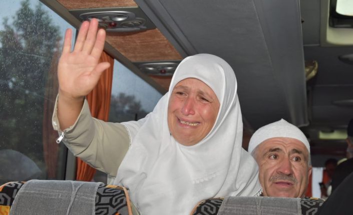 Kent Meydanında düzenlenen ve duygusal anların yaşandığı uğurlama programında hacı adayları yakınlarına veda ederken gözyaşlarını tutamadı.