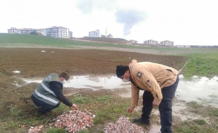 Doğa Koruma ve Milli Parklar Karabük Şube Müdürlüğü ekipleri havaların soğuması nedeniyle zorunlu mola veren leylekler için yiyecek bıraktı.