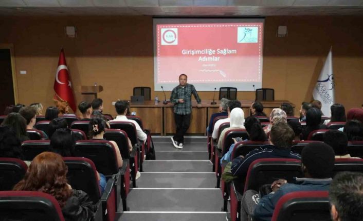 Karabük Üniversitesi’nde (KBÜ) düzenlenen etkinlikte eğitimci ve girişimci Ozan Kuşcu, girişimcilik yolculuğuna dair deneyimlerini öğrencilerle paylaştı.
