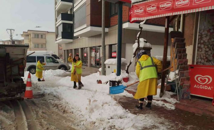 Belediyeden yapılan açıklamada, “Fen İşleri Müdürlüğü ekipleri, büyük araçları ile ana caddelerdeki ve mahalle aralarındaki yolları açarken, Temizlik İşleri Müdürlüğü personeli ise buz tutan kaldırımları temizliyor. Ekiplerin ilçe genelindeki çalışmaları, kar yağışının ilk gününden bu yana hummalı bir şekilde sürüyor” ifadeleri kullanıldı.