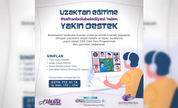 Safranbolu Belediyesi tarafından “Uzaktan Eğitime Belediyemizden Yakın Destek” sloganı bilgisayar ve internet bulunmayan öğrenciler için EBA Uzaktan Eğitim Sınıfı kurdu.