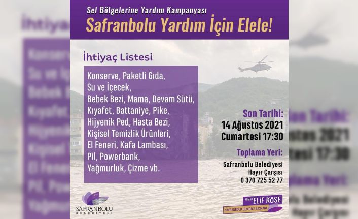 Safranbolu Belediye Başkanı Elif Köse’nin talimatı ile bölgede meydana gelen sel felaketlerinde mağdur olan vatandaşlar için “Safranbolu Yardım İçin El Elele” kampanyası başlatıldı.
