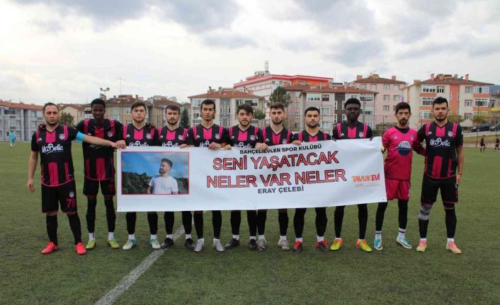 Karabük Cengiz Ünal 1.Amatör Ligi takımlarından Karabük Bahçelievlerspor Kastamonu’nun Bozkurt ilçesindeki sel felaketinde sulara kapılarak kaybolan amatör futbolcu arkadaşları Eray Çelebi için pankartla maça çıktı.