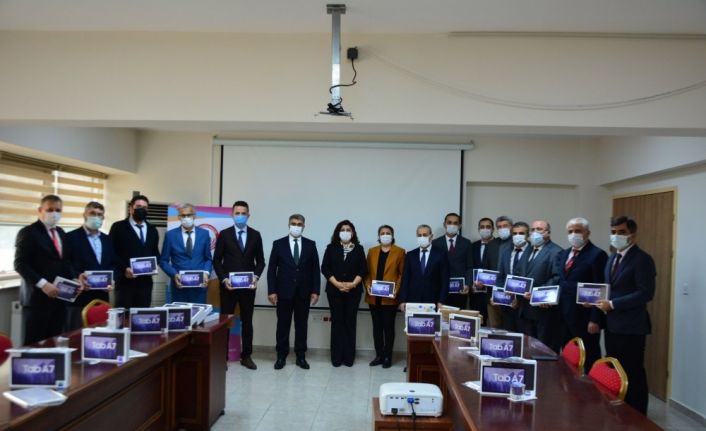 Törende konuşan Valimiz Sayın Fuat Gürel, salgın sürecinin bütün dünyada olduğu gibi Türkiye’de de çok şeyi değiştirdiğini ancak hazırlıklarını zaten yaptıklarını belirterek, “Milli Eğitim Bakanlığı ve diğer kurumlarımızın da alt yapıları mevcut, EBA sistemini hazır hale getirmiştik, Mart ayında okulların ara verilmesi ile birlikte EBA sistemi devreye girdi ve uzaktan eğitim vermeye başladık. Ekonomik yoksunluk çeken ailelerimizin çocukları tabletleri veya bilgisayarları olmadığından EBA sisteminden yararlanamadı. EBA üzerinden verilen eğitimler televizyondan da veriliyor. Ancak televizyonu olmayan ailelerimiz dahi var. Özellikle Sosyal Yardımlaşma ve Dayanışma Vakfı aracılığı ile bu şekilde olan ailelerimize yardımcı olmaya gayret ettik ama talep fazla olunca Sosyal Yardımlaşma ve Dayanışma Vakıflarının bunun üstesinden gelmeleri mümkün olmadı. Sadece tablet dağıtılması ilgili bir olay da değil gerekli internet altyapısının bulunması veya takviye edilmesi gerekiyor. Allah devletimize zeval vermesin. Ülke genelinde 500 bin tabletten dağıtımı yapılıyor. Temennimi 2021 yılının yaz aylarına doğru pandeminin azalması ve bitmesi. Aşının gelmesi ve tedavi edici ilaçlarında bulunması ile birlikte salgını inşallah atlatacağız. Hala eğitime ulaşmakta sorun yaşayan çocuklarımız var, il genelinde 1315 çocuğumuz bu sorunları yaşamakta, bugün 700 tablet dağıtıyoruz” dedi.