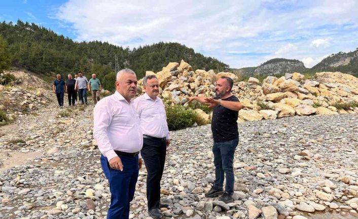 DSİ 23. Bölge Müdürlüğü tarafından yapılan Soğanlı Çayı taşkın koruma inşaatında Ünal ve Güneş incelemelerde yetkililerden bilgi aldı.