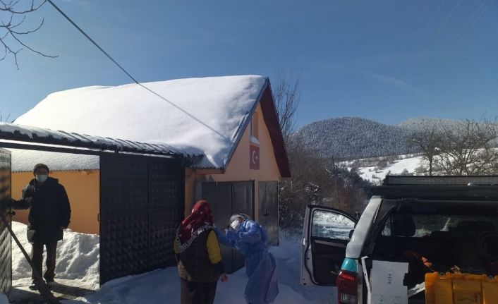 Karabük’te sağlık ekipleri karla kaplı köylerde hafta sonu aşılama çalışmalarını sürdürdü. 85 yaş ve üzeri yaşlılar ile evde sağlık hizmetlerinden faydalanan hastalara mobil sağlık ekipleri tarafından evlerinde aşı uygulandı.