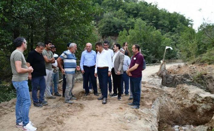 Vali Gürel, sel afetinde en çok zarar gören ve şebeke suyu borularının zarar görmesi nedeniyle yeterli miktarda su alamayan Güney Köyü ve Tır Köyü’ndeki içme suyu isale hattında bitmek üzere olan çalışmaları inceledi.