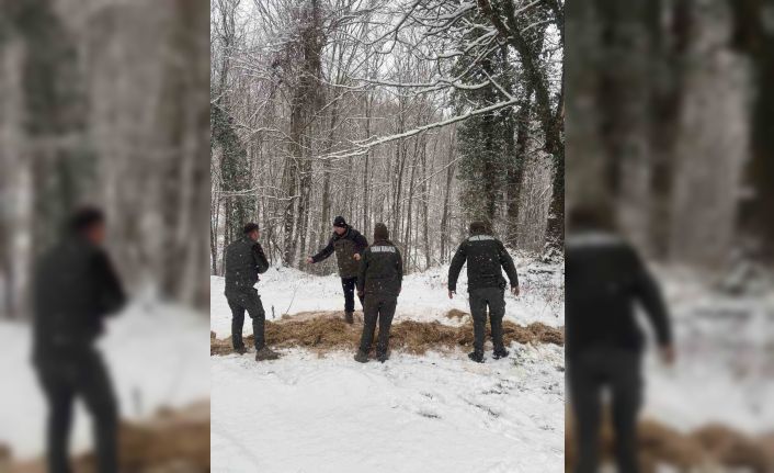Karabük’ün Yenice ilçesinde zorlu kış şartlarında yaban hayvanları için doğaya yem bırakıldı.