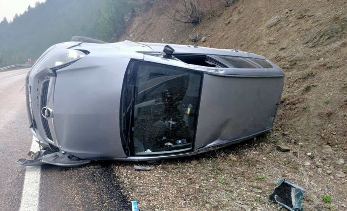 Karabük’te meydana gelen trafik kazasında yoldan çıkan otomobil devrilirken, sürücüsü ise kazayı yara almadan atlattı.