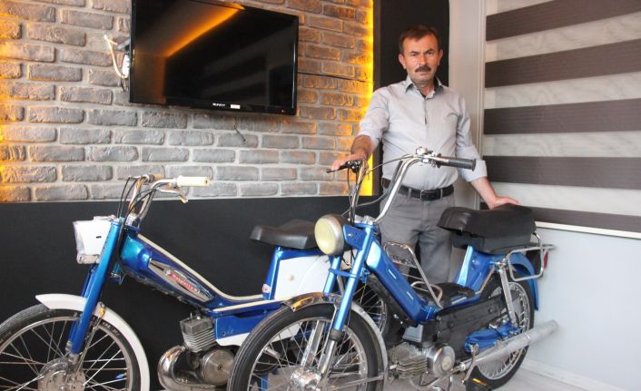 Karaman’da bir esnaf çocukluk yılarında binmekten keyif aldığı iki motosikleti hurda fiyatına satın alarak bakımını yaptırdıktan sonra iş yerindeki odasına yerleştirdi.