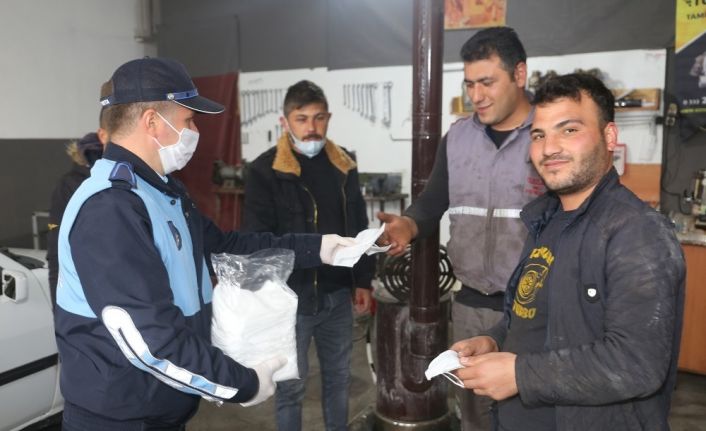 Karaman Belediyesi, korona virüs salgınından korunmaları için Yeni Sanayi Sitesindeki esnaflara ücretsiz maske dağıttı.