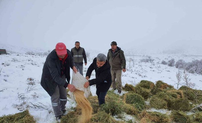 Yaban hayvanlarına yem desteğiyle ilgili olarak yapılan açıklamada, Anadolu yaban koyunu, yaban keçisi ve diğer büyük memeli hayvanlar için yonca balyaları, yırtıcılar, kuşlar ve küçük memeli hayvanlar için buğday ve yemek artıkları ilimizdeki yaban hayatı sahalarına bırakılmaktadır. Bu kapsamda Anadolu yaban koyunu ve yılkı atları için Kılbasan köyü sınırlarındaki Karadağ’a 550 kilo yonca balyası ve yol kenarlarına da 150 kilo buğday kırığı bırakılmıştır. Müdürlüğümüzce yaban hayvanları için yaşam alanlarına besin takviyesi yapılmaya devam edilecektir” denildi.