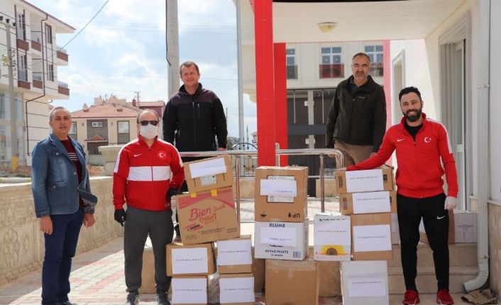 Karaman Gençlik ve Spor İl Müdürlüğü antrenörleri, Korona virüs önlemleri kapsamında sokağa çıkmayan 65 yaş ve üstü vatandaşa gıda kolisi yardımı yaptı.