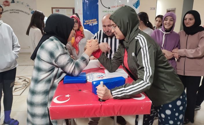 Gençlik ve Spor İl Müdürlüğü ile Türkiye Vücut Geliştirme, Fitness ve Bilek Güreşi Federasyonu İl Temsilciliği tarafından Hatuniye Kız Yurdunda sportif etkinlikler çerçevesinde bilek güreşi turnuvası düzenlendi. Öğrencilerin yoğun ilgi gösterdiği turnuva 30 öğrencinin kıyasıya mücadelesine sahne oldu. 65 kilo altı ve 65 kilo üstü olmak üzere iki kategoride düzenlenen yarışmalar sonunda 65 kilo altında Hilal Cora birinci, Esma Şahin ikinci, Hatice Okumuş üçüncü, Melike Gürkan dördüncü oldu. 65 kilo üzerinde ise Zeynep Yanlıca birinci, Bilge Nur Özekon ikinci, Fatma Nur Atay üçüncü, Ayşegül Kayacı dördüncü olan isimler oldu.