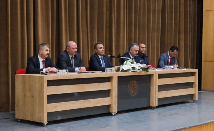 Vali Hayrettin Çiçek başkanlığında, Piri Reis Kültür Merkezi’nde gerçekleştirilen toplantıda, okul çevrelerinde alınacak güvenlik önlemleri, öğrenci servislerinin denetimi, bağımlılıkla mücadele ile okullarda sağlık ve hijyen tedbirleri görüşüldü.