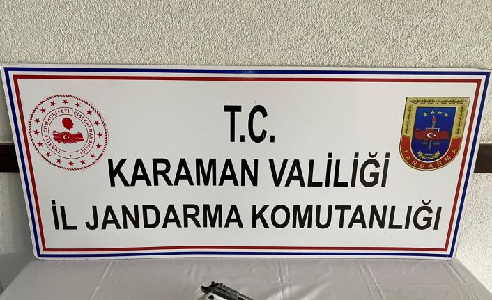 Karaman’da jandarmanın yürüttüğü devriye esnasında bir kişinin üzerinde ruhsatsız tabanca ele geçirildi.