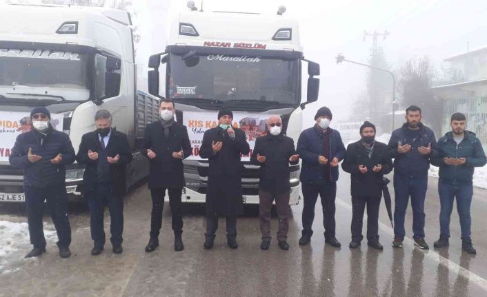 İlçedeki sivil toplum kuruluşları ve hayırsever vatandaşların desteği ile temin edilen 2 tır kömür dualarla Suriye’ye gönderildi. Tırlar için Ahmet ve Nezahat Keleşoğlu Camii önünde uğurlama töreni düzenlendi. Törene, Ermenek Kaymakamı Hacı Osman Hökelekçi, İlçe Müftüsü Abdullah Özmen ile sivil toplum kuruluşlarının temsilcileri ve vatandaşlar katıldı. Yapılan duanın ardından kömür dolu 2 tır, Hatay’a uğurlandı.