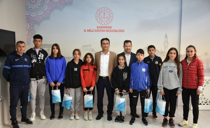 Karaman İl Milli Eğitim Müdürü Mehmet Çalışkan, Atletizm U14 ve U16 Türkiye Şampiyonasında dereceler elde ederek madalyalarla dönen sporcuları makamında kabul etti.