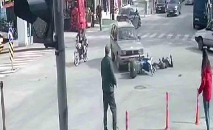 Karaman’da dönüş yapmakta olan otomobil ile çarpışan motosikletin sürücüsü yaralandı. Kaza anı ise güvenlik kamerasına yansıdı.
