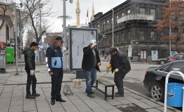 Kars Belediyesi kent merkezinde bulunan oturma banklarını Yeni tip koronavirüs (Kovid-19) salgınıyla mücadele tedbirleri kapsamında sökmeye başladı.