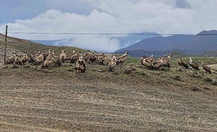 Karayolunu kullanan vatandaşlar, yol kenarında sürü halinde akbabaları görünce önce şaşırdı, ardından cep telefonlarına sarılan vatandaşlar bir süre akbabaları kaydetti. Vatandaşları fark eden akbabalar ise bölgeden uçarak uzaklaştı.