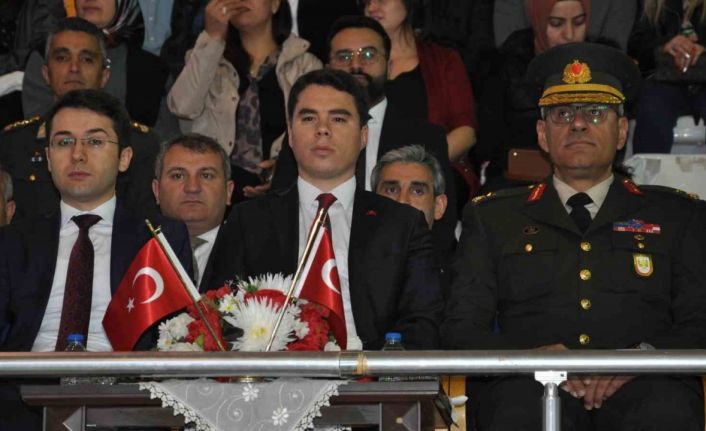 Tören, Hükümet Konağı önündeki Atatürk Anıtı’na Milli Eğitim Müdürlüğü’nün çelengi konuldu. Ardından İsmail Aytemiz Spor ve Sergi Sarayı’na geçildi. Buradaki tören saygı duruşu ve İstiklal Marşı’nın okunmasıyla başladı.