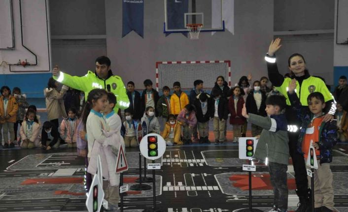Kars’ta trafik polisleri tarafından 600 ilk ve ortaokul öğrencisine trafik kuralları anlatıldı.