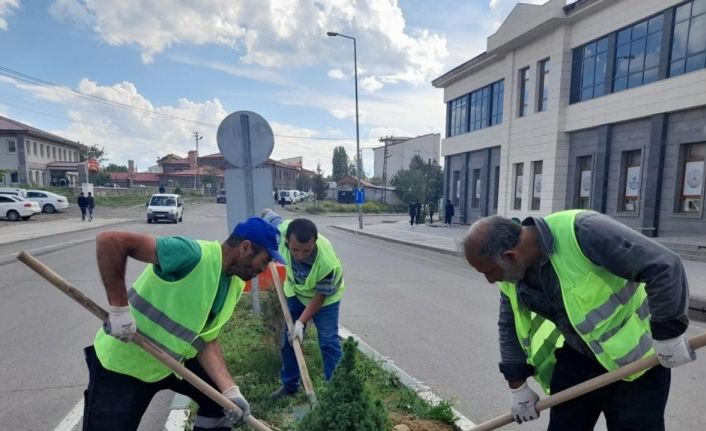 Kars’ta belediye ekipleri, park, bahçe ve refüjlere çeşitli fidanlar dikiyor. Park ile bahçelerde yabani otla mücadele çalışması yapıyor.