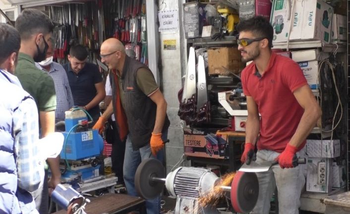 Korona virüs (Kovid-19) tedbirleri kapsamında sosyal mesafe kuralları çerçevesinde vatandaşlar bıçak, balta ve satırlarını biletiyor.