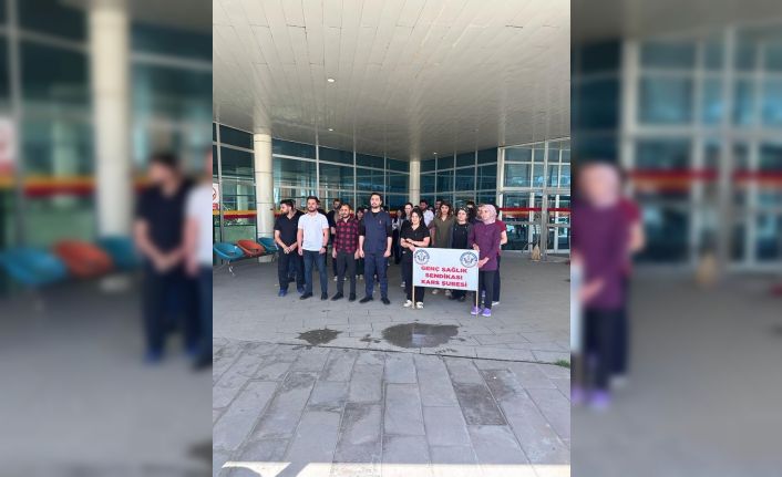 Genç Sağlık Sendikası üyeleri hastane önünde toplanarak maaş zamları ile ilgili basın açıklaması yaptı.